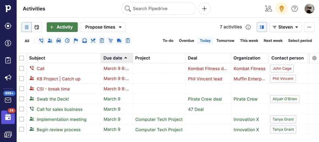 - Wenn du eine Aktivität mit einem Deal, Lead oder Projekt verknüpfst, wird sie automatisch auch mit dem entsprechenden Kontakt und/oder der Organisation verbunden.
